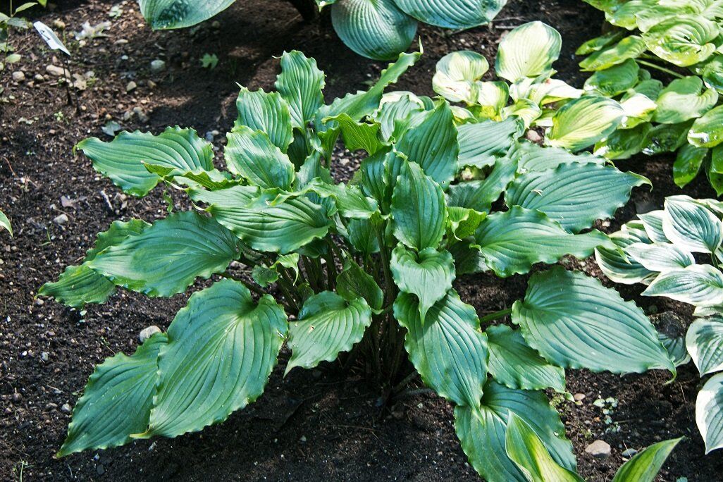 This Hosta adds a touch of playful charm to your garden. With its very wavy and slightly twisted green leaves, this variety exudes character and personality. Its solid, upright growth is complemented by speckled red petioles, adding a delightful pop of color to its vibrant foliage. ‘Ain’t Misbehavin” is the perfect choice for those looking to add a bit of whimsy and flair to their garden landscape.