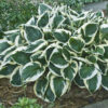 A definite favorite, the beautiful Paradigm makes a 3-4 ft. wide clump of glossy bright gold foliage, surrounded by a wide dark blue green border. Lavender flowers. Sun tolerant!(Mature Size: 22"T x 48"W)