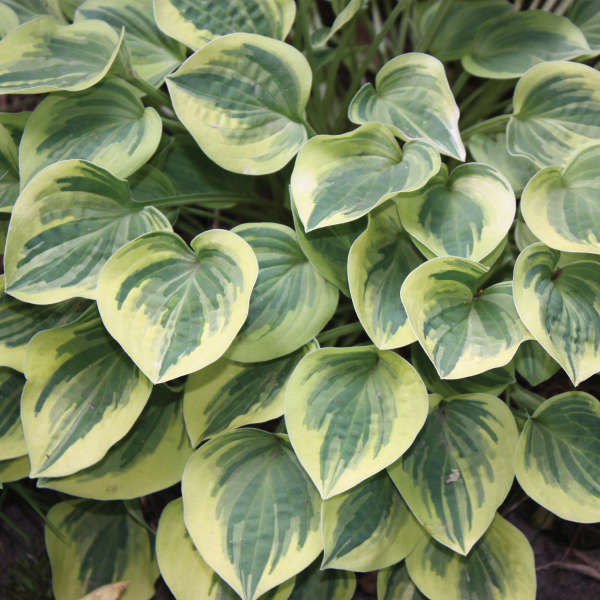 This mini hosta, a reverse sport of Pandora’s Box, showcases small, rounded green leaves adorned with creamy white margins. Adding to its charm, this compact variety produces delicate purple flowers.(Mature Size: 6″T x 12″W)