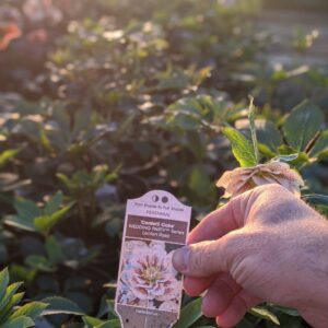 A selection from the Wedding Party Series, this hellebore features 2 1/2-3″ double bloom white flowers speckled with burgundy at its centers. A deliciously beautiful plant!Hellebores, also known as Lenten Roses, are early bloomers that bring color to the late winter and early spring garden, often flowering for six weeks or more. These woodland plants thrive in moist, shaded areas, and are also deer and rabbit resistant.