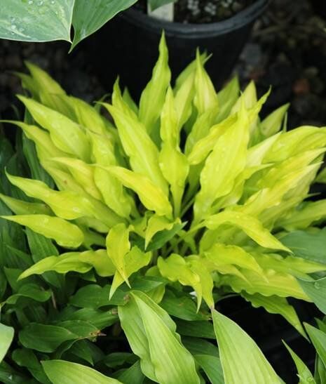 This mini enchants with its narrow, upright leaves and vibrant chartreuse color throughout the season. A seedling from ‘Corkscrew’ and ‘Green Eyes’, this variety boasts excellent substance and adds a unique vertical element to any shade garden.(Mature Size: 5″T x 8″W)