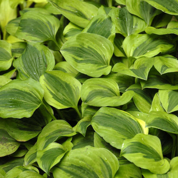 Medium hosta with broadly ovate, chartreuse leaves with darker green centers. The smooth leaves are of good, thick substance and are slightly wavy. Lavender flowers. A vigorous grower and sun tolerant!(Mature Size: 14″T x 24″W)