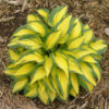 Medium-sized hosta with foliage in which the colors change from a combination of blue and gold to dark green and creamy white. A crowd favorite that is both slug resistant and sun tolerant!(Mature Size: 16"T x 36"W)