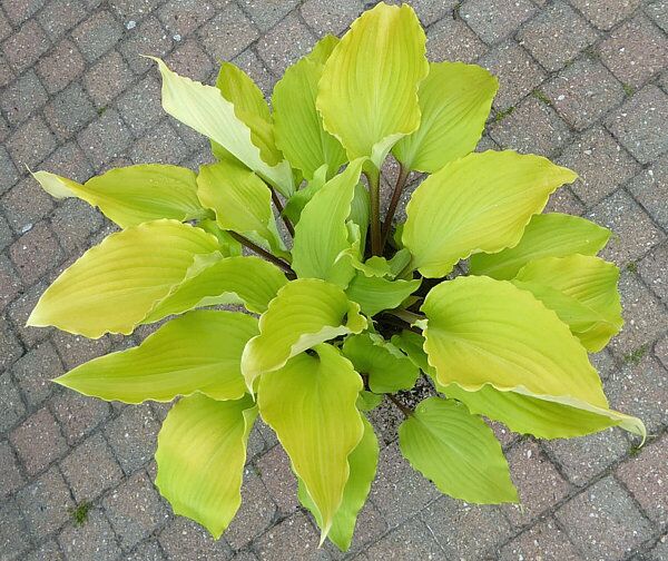 An unregistered hosta from Ronny Van Keer, Hosta ‘Holar Sunset Python’ (often shortened to Sunset Python) is a medium hosta with yellow foliage and red-purple petioles. It is a seedling of (‘Tequila Sunrise’ x ‘Maya Kingsnake’).
