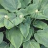 A large sun tolerant hosta with very glossy green leaves that arch upward to make a large clump.. In late summer, you will be sure to notice the dozens of 3 ft. stalks of fragrant white flowers!(Mature Size: 26"T x 48"W)