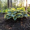 A customer favorite, this large, thick-leaved hosta has green leaves with wide, gold margins. Incredible substance ranks this hosta near the top for this trait. Near white flowers and slug resistant!(Mature Size: 26″T x 40″W)