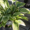 A small hosta with cute green, cupped leaves. Light lavender flowers. Upright shaped plant.