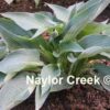 A large plant with gold leaves and an uneven dark green border, a third color appears where they overlap. Lavender flowers appear in midsummer.(Mature Size: 24″T x 60″W)