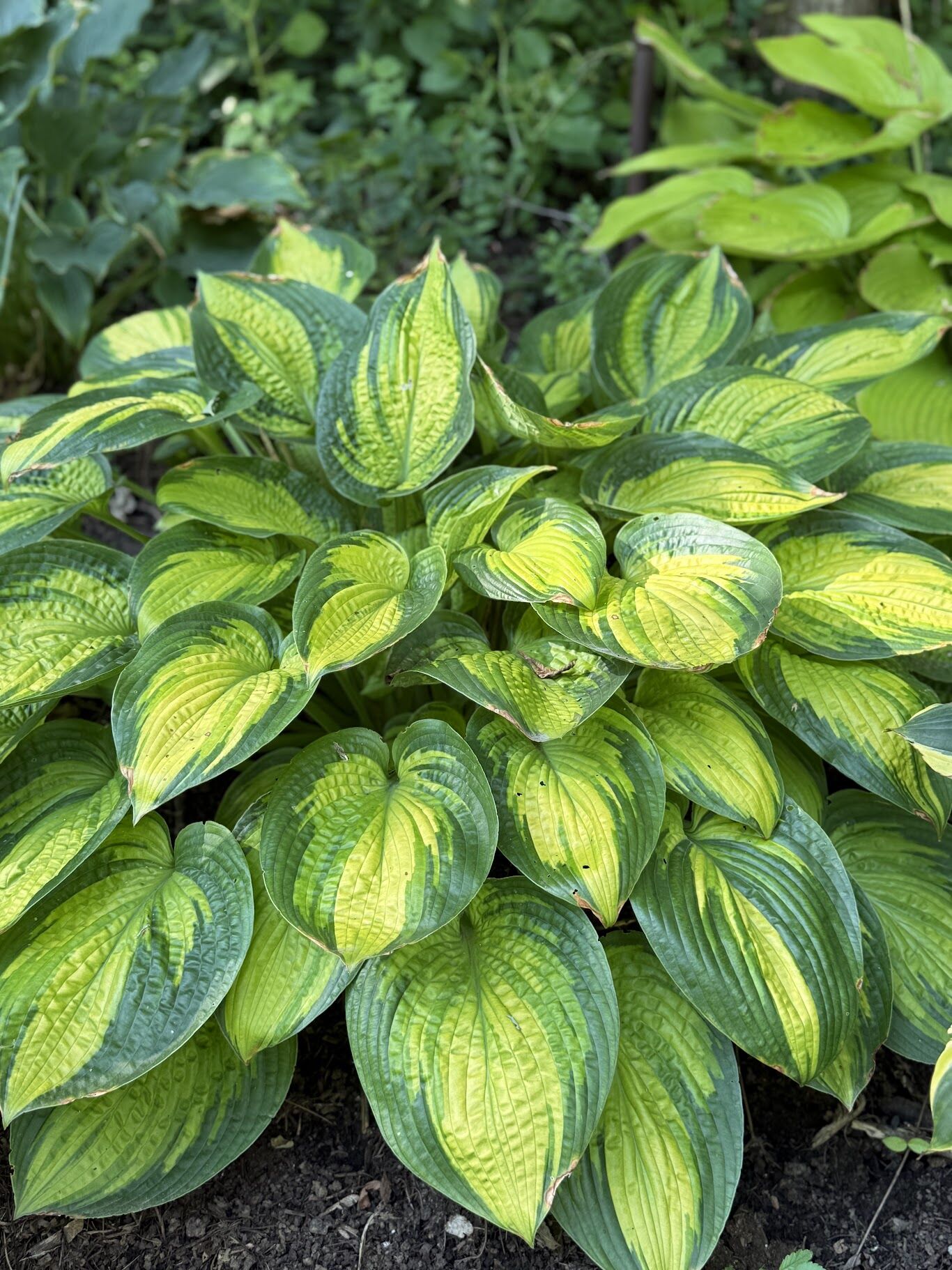 A definite favorite, the beautiful Paradigm makes a 3-4 ft. wide clump of glossy bright gold foliage, surrounded by a wide dark blue green border. Lavender flowers. Sun tolerant!(Mature Size: 22″T x 48″W)