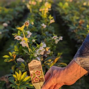A selection from the Honeymoon Series, this hellebore features 3″ single flowered white edged blooms with dramatic red centers. You will certainly get caught up in the moment with this one!Hellebores, also known as Lenten Roses, are early bloomers that bring color to the late winter and early spring garden, often flowering for six weeks or more. These woodland plants thrive in moist, shaded areas, and are also deer and rabbit resistant.