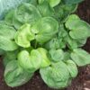 Sergeant Pepper is a medium-sized hosta with heart-shaped leaves that boast chartreuse edges contrasting with a center green streak. This sun-tolerant hosta, perhaps a nod to the iconic band, produces near-white flowers in late summer, adding a touch of elegance to its vibrant foliage.(Mature Size: 14″T x 35″W)
