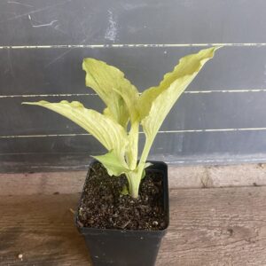 Meet ‘Shocking Mandy’, the medium-sized Hosta that’s not afraid to make a statement in your garden. With thick leaves that start in spring fairly white, like a misted seedling, this variegated beauty takes a shocking turn as the leaves twist and go in every direction, transitioning into a unique green hue. Heralded as one of Jeff’s most unusual misted plants, ‘Shocking Mandy’ is the twisty, wavy lance that adds a surprising jolt of character to your green space.(Mature Size: 8″Tx 18″W)