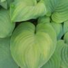 Medium hosta with bright yellow margins that gradually turn to an apple green with white lines dividing the center and margin. Slightly twisted and cupped. Lavender flowers. Great grower!(Mature Size: 12″T x 24″W)Â